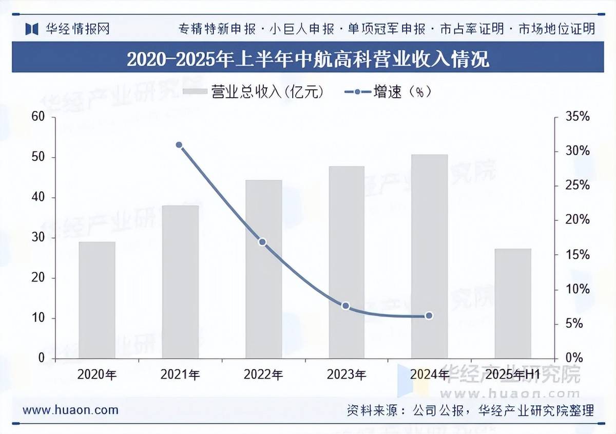 中航航空高科技股份有限公司是中国航空工业集团有限公司旗下的主要从事航空新材料研发生产、高端智能装备研发制造的大型国有控股上市企业,业务主要涵盖航空新材料、高端智能装备、轨道交通、装备制造、创新创业投资等。旗下子公司中航复合材料有限责任公司是我国航空复合材料行业的领跑者,在高性能树脂及预浸料技术、高性能复合材料新型结构、树脂基复合材料制造技术、金属基及陶瓷基(含C/C)复合材料成型技术、材料表征与测试技术、先进无损检测技术等方面均处于国内领先地位,是集复合材料研发、生产、销售和服务于一体的专业化高科技公司,正积极推进航空复合材料技术在民用飞机、汽车、轨道交通、石油、电力和新能源等领域的应用和产业化。2025年上半年,中航高科营业收入为27.47亿元。