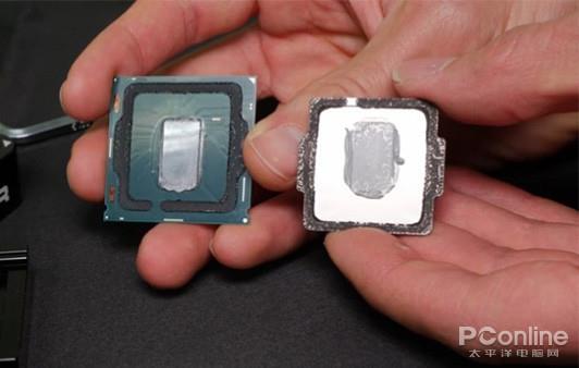 Intel这几年一直让人诟病的一点是它的“硅脂U”,就是采用硅脂作为CPU核心与顶盖之间的填充物。