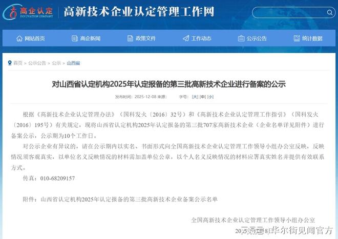 近日,全国高新技术企业认定管理工作领导小组办公室正式公示《山西省认定机构2025年认定报备的第三批高新技术企业备案名单》,慧研智投科技有限公司凭借二十余年行业沉淀、硬核技术实力与合规经营底色,成功通过国家高新技术企业认定。这标志着这家国内早期持牌证券投资咨询机构在金融科技创新领域的实力获得国家级权威认可,其“科技赋能投资”的战略实践步入全新发展阶段。